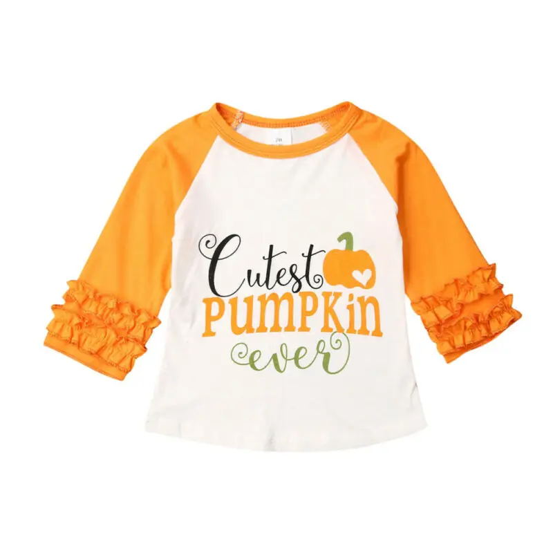 » Promo Emmababy Halloween infantile enfants bébé fille T-Shirts 1-5Y citrouille imprimé à volants à manche